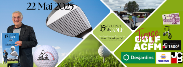 L’Association Carrefour Famille Montcalm vous invite à son 15e tournoi de golf bénéfice sous la présidence d’honneur de M. Henri Thibodeau, DG de l’ACFM.