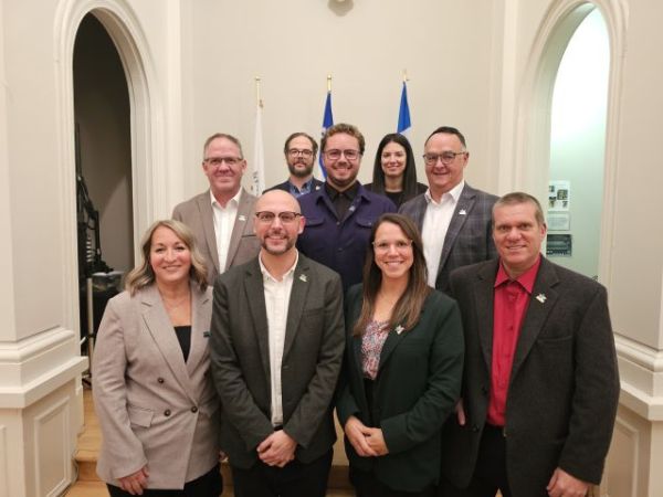 Devant : Nadine Desforges (district 5), Sébastien Marcil (maire), Alexandra Benny (district 1),...